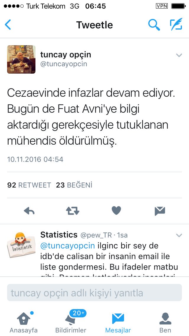 FETÖ’cü kaçak Tuncay Opçin’in şu tweeti son intiharın bir FETÖ infazı olduğunun kanıtı gibi. Çünkü Opçin FETÖ’nün suçlarını örtmek için hep başkalarına iftira atan bir terörist.