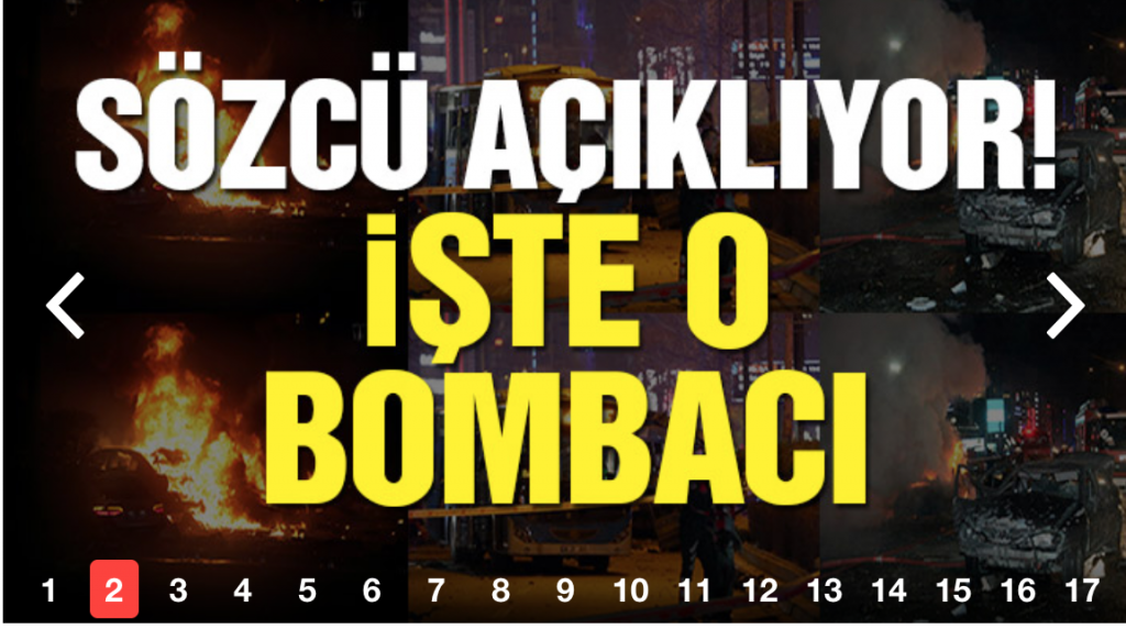 İçişleri Bakanlığı, Ankara Atatürk Bulvarı üzerinde bomba yüklü bir araçla otobüs durağında bekleyen vatandaşlara yönelik terör saldırısının failinin Seher Çağla Demir olduğunu açıkladı. Bu açıklama Ankara’daki saldırının gerçekleştiği gün o ismi ilk duyuran Sözcü gazetesine gözleri çevirdi. PKK’nın gazetesiyle aynı manşeti atan, FETÖ ile ilişkili olan Sözcü gazetesine, hala Emniyet içinden birilerinin servis yapıyor olması tam bit skandal. Bu da Emniyet içindeki FETÖ polislerinin hala aktif, etkin, Sözcü’ye servis yapacak kadar da pervasız olduklarını gösteriyor. Haliyle de akla bu nasıl bir zaafiyet sorusu geliyor.