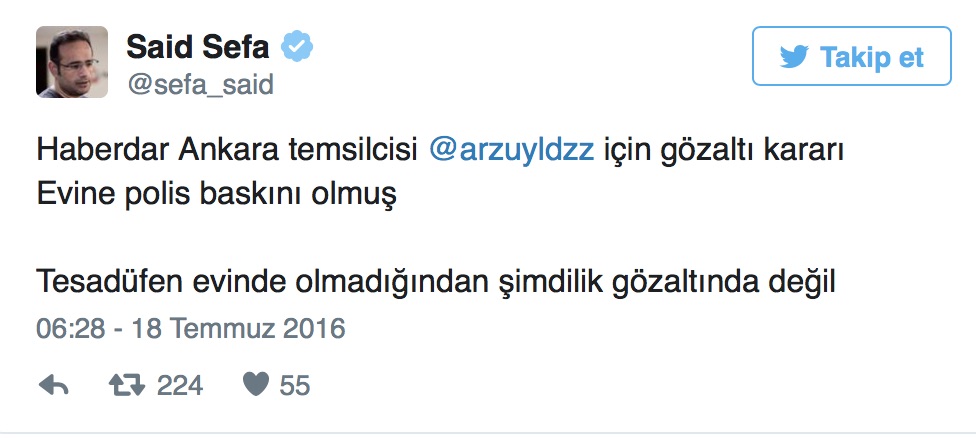 Gözaltı kararını Haberdar Genel Yayın Yönetmeni Said Sefa Twitter’dan duyurdu.