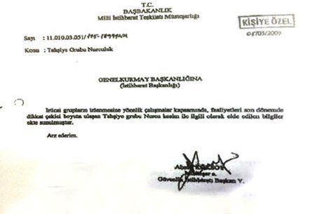 Yazıda, ”Tahşiye Grubu” veya ”Mehmet Doğan Grubu” isimli dini motifli yapılanma hakkında Müsteşarlığın faaliyet konuları kapsamında, teşkilat usul, prensip ve teknikleri kullanılarak yürütülen çalışmalar esnasında; Mehmet Doğan’ın kaleme aldığı ”Esrarname” adlı kitapta ayet, hadis ve Risale-i Nur’lardan alıntılarla yaptığı şerhlerde ”Şuayp Bin Salih” olarak adlandırdığı Usame Bin Ladin’i ”mehdinin komutanı”, El Kaide’yi ise ”mehdinin askerleri” olarak izah ettiği yönünde istihbari bilginin elde edildiği ancak söylem bazında dile getirdiği söz konusu bilginin şiddete veya silahlı teşkilatlanmaya dönüştürüldüğüne dair bir tespitin olmadığı bildirildi.
