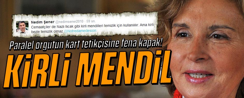 Ne değişti de Nedim Şener, Nazlı Ilıcak’ı aklama derdine düştü merak ediliyor. Bunda özellikle patronu Aydın Doğan’ın Nazlı Ilıcak’la yakın ilişkisi etkili mi? Böyle bir kurtarma operasyonu için patronu Aydın Doğan’dan talimat mı aldı, bu sorular kafaları karıştırıyor.