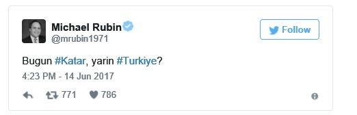 Daha önce Cumhurbaşkanı Recep Tayyip Erdoğan hakkında skandal açıklamalarda bulunan ve 15 Temmuz darbe girişimini önceden yazan Amerikan Girişimcilik Enstitüsü uzmanı ve ABD Savunma Bakanlığı (Pentagon) eski yetkilisi FETÖ’cü Michael Rubin, bu kez de Katar kriziyle ilgili Türkiye hakkında bir tehditte bulundu.