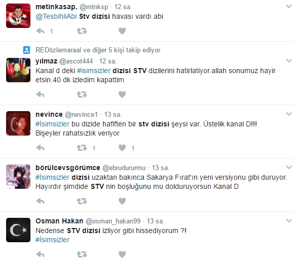 Öte yandan sosyal medya kullanıcıları da ‘İsimsizler’ dizisi ile Samanyolu’nda yayınlanan ‘Tek Türkiye’ ‘Şefkat Tepe’ dizileri arasındaki benzerliklerin farkına vardıklarını paylaşımlarıyla belirtti.
