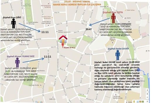 Fezlekede, İstihbarat Dairesi C Şubesi ile Ankara Emniyet İstihbarat Şubesi’nde görevli emniyet müdürleri ile istihbarat polisinin komplonun merkezinde yer aldığı ve hedef kişileri adım adım takip ettikleri kaydedildi. Bu takibi ortaya koyan grafiklerde, FETÖ’cü polislerin siyasetçileri hem dinledikleri, hem de izledikleri, telefon sinyal kayıtlarıyla ortaya konuldu.