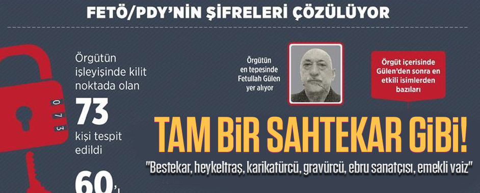 Emniyetin yaptığı soruşturmada FETÖ/PDY lideri Fetullah Gülen’in mesleği kayıtlarda yazar, bestekar, heykeltraş, karikatürcü, gravürcü, ebru sanatçısı ve emekli vaiz olarak kayıtlarda bulunuyor.