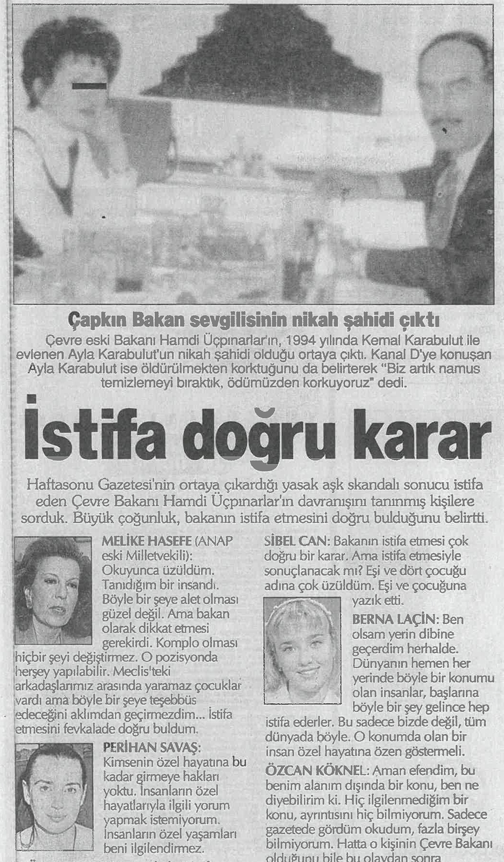 MEDYAGUNDEM.COM- Tarihler 6 Şubat 1996’yı gösterirken gazetelerin manşetlerini DYP’li Çevre Bakanı Hamdi Üçpınarlar’ın aşk skandalı süslüyordu. 11 ay önce Ayla Karaduman ile gayrimeşru ilişkisinin yataktaki görüntüleri videoya alınmıştı. Tabii porno kaset uzmanı Fetocu terör örgütü o zamanlar daha deşifre olmamıştı, Üçpınarlar meselesinde de FETÖ mü vardı tarihin tozlu sayfalarında kaybolup gitti.