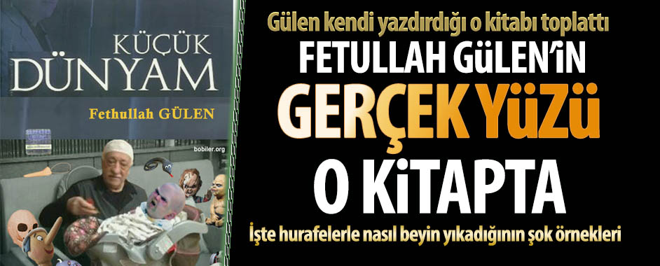 Sabah gazetesi yazarı Rasim Ozan Kütahyalı, Fetullah Gülen’in  nasıl beyinleri yıkayarak bugünlere geldiğini yazdı. Yazısında da piyasadan bizzat Gülen tarafından toplatılan ve Gülen’i anlatan “Küçük Dünyam” kitabından örnekler verdi.  Gülen’in hurafelerle insanları nasıl kandırdığı daha bir netleşti. İşte Gülen’in sapık ve hurafe dolu dünyası: