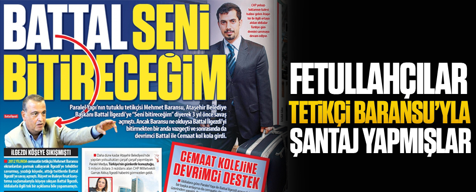 Paralel Yapı’nın tutuklu tetikçisi Mehmet Baransu, Ataşehir Belediye Başkanı Battal İlgezdi’ye “Seni bitireceğim” diyerek 3 yıl önce savaş açmıştı. Ancak Baransu ne olduysa Battal İlgezdi’yi bitirmekten bir anda vazgeçti ve sonrasında da Devrimci Battal ile Cemaat kol kola girdi.