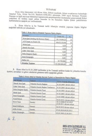 Bünyesinde 18 şirket bulunan Koza İpek Holding’e bağlı Koza Altın İşletmeleri AŞ, 2010-2014 arasında, vergi dışı 2 milyar 100 milyon lira net kâr etti. Holdingin yöneticileri Hamdi Akın İpek, Cafer Tekin İpek ve Pelin Zenginer kardeşler ile anne Melek İpek, bu tutarın tamamı yerine 534 milyon lirasını kâr payı olarak dağıtıp borsada binlerce insanı dolandırdı. 534 milyon liranın 240 milyonu, 152 milyon liralık ana sermayenin yüzde 45 ortağı ATP İnşaat’a, 133 milyonu yüzde 25 ortak Koza Anadolu Metal’e, 161 milyonu da yüzde 30 hissenin sahibi olan borsadaki yatırımcılara dağıtıldı. Bu 5 yılda, şirketteki toplam sermayeleri sadece 80 kuruş olan aile bireyleri Hamdi Akın, Cafer Tekin ve Melek İpek ile Pelin Zenginer’e kâr payı, huzur hakkı, temettü ve prim adı altında 120 milyon TL usulsüz ödeme yapıldı.