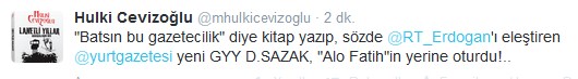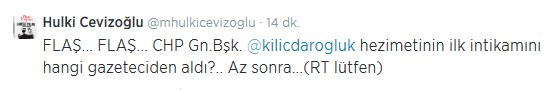 Skandal CHP Milletvekili Durdu Özbolat’ın sahibi olduğu Yurt gazetesi ve Sokak TV’de yaşandı. Sokak TV’de program yapan, Yurt gazetesinde yazan Hulki Cevizoğlu bizzat Kılıçdaroğlu tarafından kovdurulduğunu Twitter’da açıkladı.
