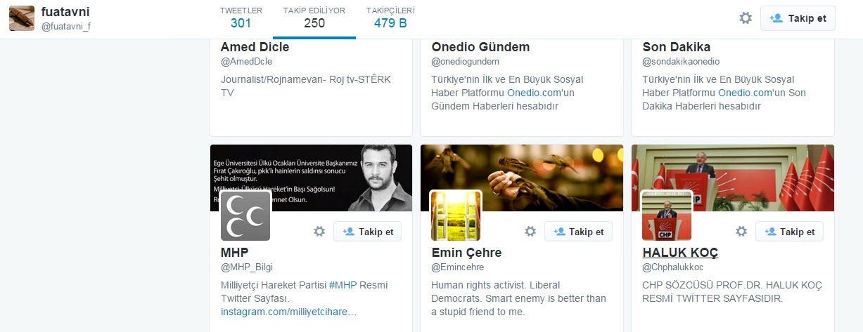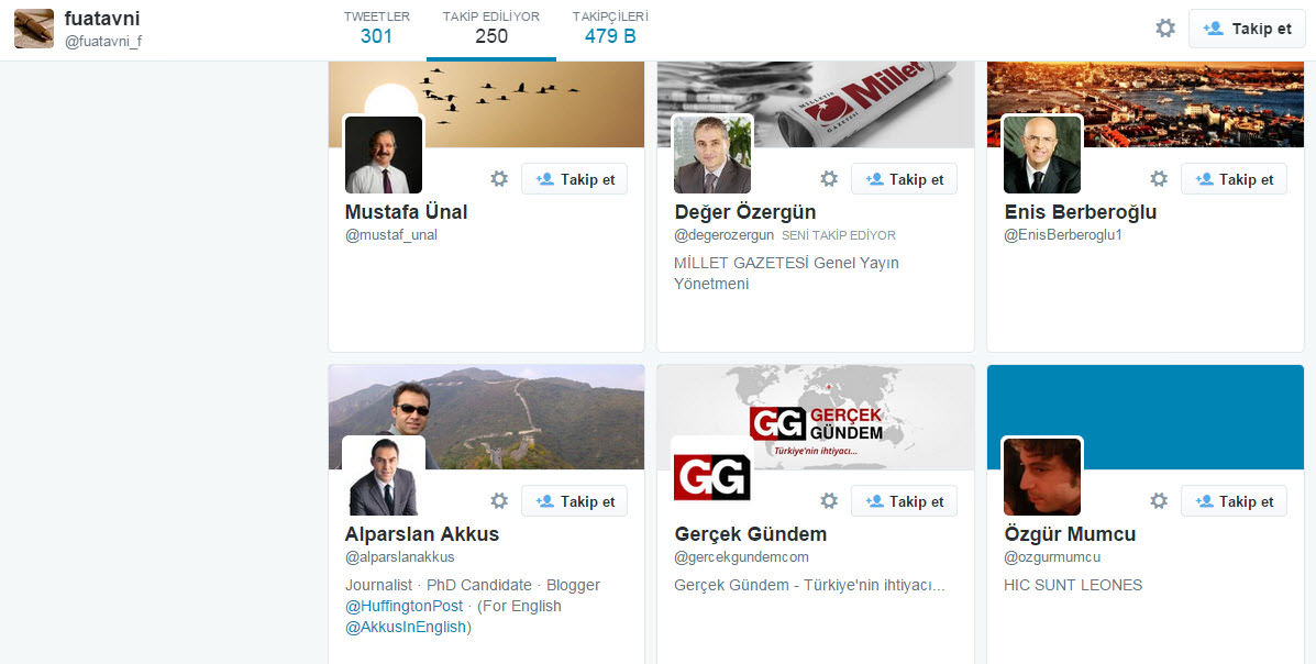 Fuat Avni hesabının sosyal medyadaki takip listesinde yer alan bazı önemli isimler paralel yapı ile CHP arasında dönen kirli ilişkiyi gözler önüne seriyor. Fuat Avni’nin de bu isimleri takip listesine almasının sebebi Twitter’ın öne sürdüğü kullanıcıların gizlice mesajlaşabilmesi için iki hesabın da birbirini takip etmesi şartı.