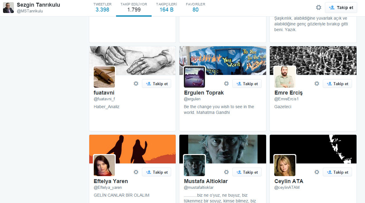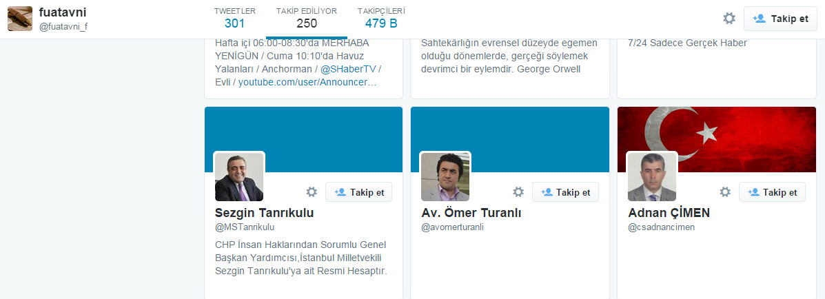 Sezgin Tanrıkulu’nun devlet içerisine sızmış karanlık bir örgütün Twitter’daki bir resmi hesabı haline gelen Fuat Avni’yi hangi amaçla takip ettiği bilinmiyor fakat Fuat Avni’nin bu ismi hangi amaçla takip listesine aldığı çok belli.