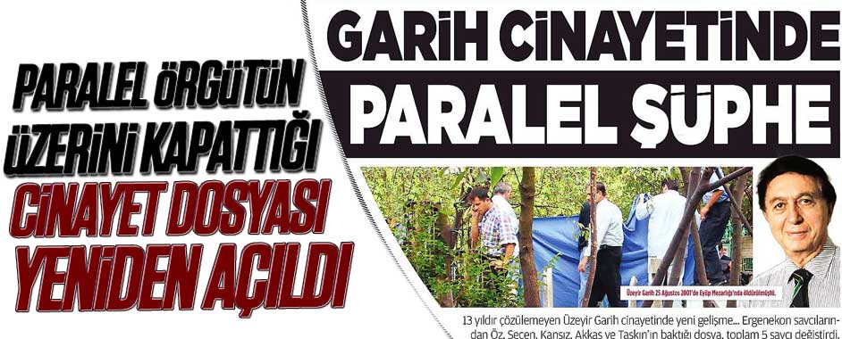 Garih o dönem askerliğini yapan Yener Yermez tarafından öldürülmüştü. Yermez ağırlaştırılmış müebbet hapis cezası almıştı. Rafa kaldırılan cinayet dosyası, Alarko Holding’in eski ithalat koordinatörü ve öldürülen Üzeyir Garih’in arkadaşı işadamı Doğan Kasadolu’nun şikayeti ile yeniden ele alındı. Kasadolu, özel yetkili savcılık döneminde dilekçe vererek cinayetin ‘örgüt kapsamında’ yeniden araştırılmasını talep etti. Şikayet dilekçesi ile birlikte açılan soruşturma önce Savcı Cihan Kansız, ardından da Savcı Muammer Akkaş tarafından yürütüldü. Ancak soruşturma dosyasında herhangi bir işlem yapılmadı.