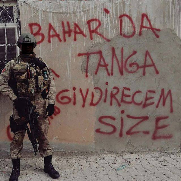 İkilinin bahar sevdasına en güzel cevap ise bir özel harekat askerinden geldi. Sosyal medyada paylaşılan bir fotoğrafta bir duvarın önünde duran tam teçhizatlı bir asker, duvara yazdığı “Baharda tanga giydirecem size” sözleriyle teröristlere cevap verdi.