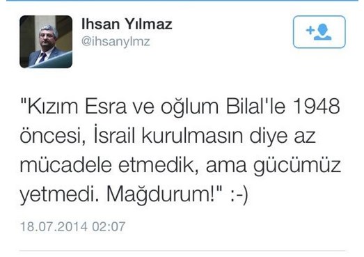 Fatih Üniversitesi öğretim üyesi ve Zaman gazetesi yazarı İhsan Yılmaz’ın Twitter’da Başbakan Erdoğan ve ailesine yönelik bir twiti lanetlendi, Gazze ağlarken o haşhaşinin gülücükler içinde Erdoğan ve ailesine saldırması büyük nefret topladı.