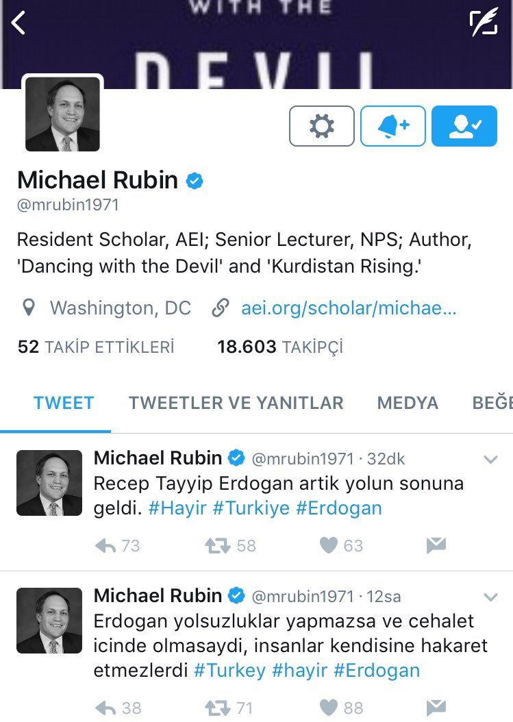 Cumhurbaşkanı Erdoğan düşmanlığıyla Türkçe tweet atan Michael Rubin’e 15 Temmuz’da çekilen fotoğrafla cevap verdiler.