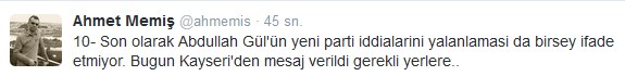 Gülen örgütünün tetikçisi, operasyon sitesi Rotahaber de Gül’ün yeni parti kurmak için “Gül sahaya indi” manşetini atarken, bu sitenin müptezel paralel tetikçisi haber müdürü ise bakın Twitter’da nasıl zırvalıyordu: