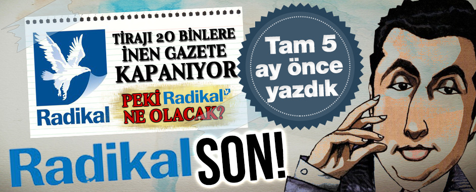 MEDYAGÜNDEM- Tam 5 ay önce yazdık, dedik ki, “Radikal’de büyük tasfiye yaşanacak, Radikal kağıt baskıdan vazgeçecek.” Yani Radikal kapanacak! Ve düğmeye basıldı. Haberi Medyatava duyurdu. Habere göre, şimdiye kadar 4’ü sayfa sekreteri olmak üzere en az 6 kişinin işine son verildi. Bazı çalışanlar ise Doğan Grubu çatısı altındaki diğer yayın …