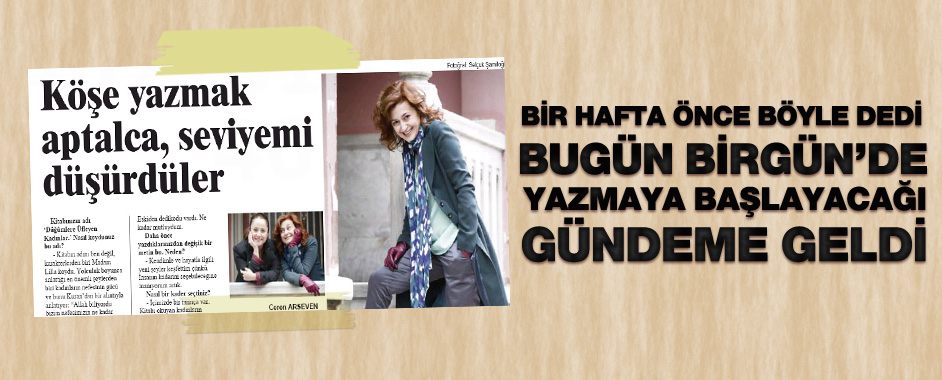 MEDYAGÜNDEM- Geçtiğimiz cumartesi günü Hürriyet’in ekinde yayınlanan röportajında Ece Temelkuran, “Köşe yazmak aptalca, seviyemi düşürdüler” diye esti gürledi, bugün Birgün’de yazmaya başlayacağı gündeme geldi. Hürriyet Cumartesi’de yayınlanan röportajında Temelkuran, “Var mı köşe yazarlığı teklifleri?” sorusuna, “Var ama ben istemiyorum. Köşe yazısı yazmak aptalca, ortalamaya yönelik bir iş. Muhataplarının ilkelliği sebebiyle …
