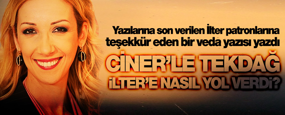 MEDYAGÜNDEM- Balçiçek İlter, bugün Habertürk’te son yazısı kaleme aldı, okuruna veda etti. Yazısında ilginç detaylar da vardı. “Öncelikle patronum Turgay Ciner ve medya grup Başkanım Kenan Tekdağ’a büyük bir teşekkür…” diyen İlter, yazılarına son veren adresin de Ciner’le Tekdağ olduğunu yazdı. “Onlar ‘yaz’ dedi, yazdım” diyen İlter, “Bugün ise… Eğer …