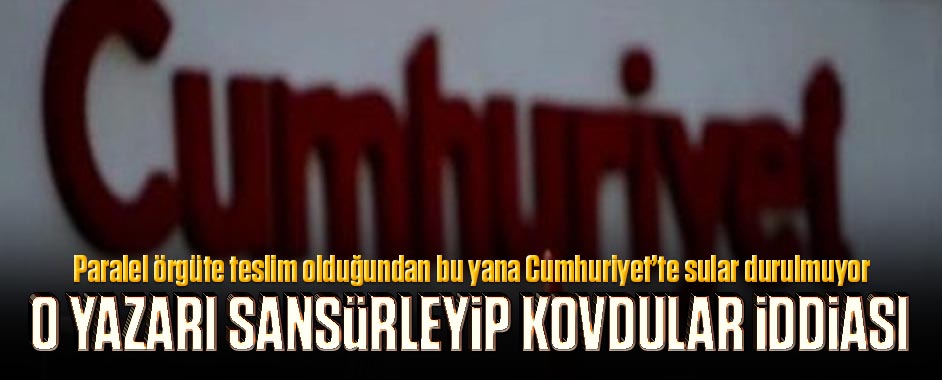 Cumhuriyet gazetesinde deprem üstüne deprem… Bu kez de 37 yıldır Cumhuriyet’te yazan bir yazar sansürlendi ve iddiaya göre kovuldu. Bilindiği gibi; Cumhuriyet Gazetesi Genel Yayın Yönetmeni Utku Çakırözer görevinden alınmış, Genel Yayın Koordinatörü Murat Sabuncu ve Yazı İşleri Müdürü Ayşe Yıldırım Başlangıç ise gazete yönetimine istifalarını vermişti. Görünen o ki; …