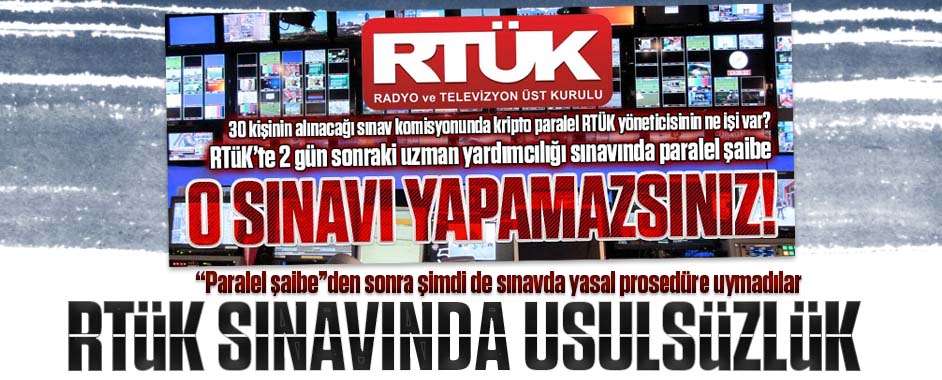 RTÜK’te iki gün önce yapılan uzman yardımcılığı sınavına “paralel şaibe”den sonra şimdi usulsüzlük skandalı damga vurdu. MEDYAGUNDEM.COM- İki gün önce ( 8 Şubat) RTÜK’te 30 uzman yardımcısı alımı için yapılan sınavda usulsüzlük yapıldığı ortaya çıktı. Sözkonusu sınavdaki “paralel şaibe”yi MEDYAGÜNDEM gündeme getirmişti. İki gün önce başlayan uzman yardımcılığı sınavında HDP’li …