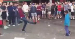 İngiliz holiganların Fransa’da mülteci çocuklara bozuk para atıp dalga geçtiği görüntüler ortaya çıktı. EURO 2016 devam ederken Ruslarla giriştikleri kavgayla Paris sokaklarını karıştıran İngiliz holiganlar bir skandala daha imza attı. MÜLTECİ ÇOCUKLARLA DALGA GEÇTİLER Fransa’da küçük çocuklara bozuk para attıkları iddia edilen taraftarların, çocuklarla dalga geçtikleri görüntüleri ortaya çıktı. Sosyal …