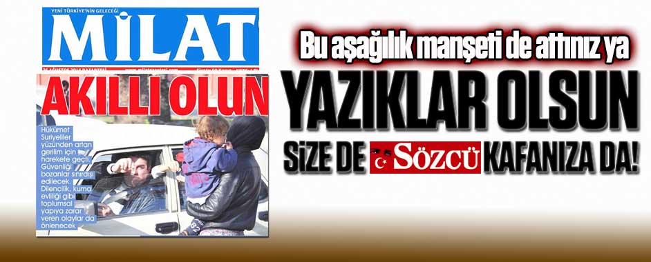 DevamıMilat Gazetesi’nden ‘Sözcü’leşen çirkin manşet!