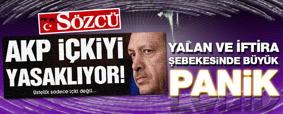 MEDYAGÜNDEM- Alkollü içki reklamının yasaklanmasıyla içki lobisine hortumu dayayan medyada büyük panik başladı. Sözcü denilen küfür gazetesinin internet sitesinde hemen “AKP içkiyi yasaklıyor!” manşeti atılarak, çarpıtma bir başlıkla panik açık edildi. İçki lobilerinin beslediği Sözcü’nün yeni düzenlemeyle büyük bir gelir kaynağı da yok olacak. medyagundem.com