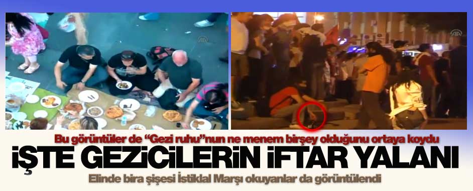 Ankara’daki Gezi Parkı eylemleriyle ilgili yeni görüntüler ortaya çıktı. Görüntülerde eylemcilerden bazılarının Güven Park’ta kurdukları sözde iftar sofrasında akşam ezanı okunmadan 17 dakika önce yemek yediği de görülüyor. Gezi Parkı odaklı olaylarda Ankara’daki eylemcilerin, elinde alkol şişesiyle İstiklal Marşı okuduğu veya bu sırada kaldırımda oturduğu, banka şubesi ve polise molotofkokteyli …