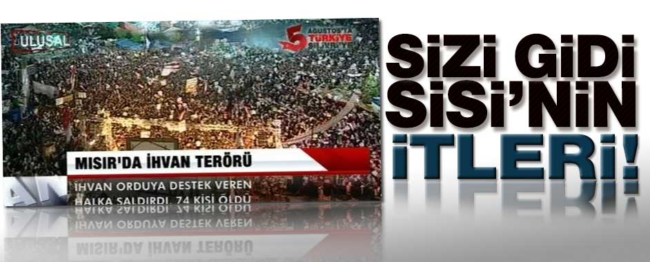 Mısır’daki kanlı darbe ve darbeye karşı yapılan gösterileri öyle bir haber yaptı ki, tek kelimeyle ‘Pes’ dedirtti. Marjinal yayınlarıyla bilinen Ulusal Kanal ‘ın Mısır ‘da yaşanan olaylara yaklaşımı ve kanlı darbe cileri bariz olarak destelediği haberler, görenlere ‘Bu kadarına da pes’, ‘Bunu kanlı darbeci Sisi ‘nin kanalı bile yapmazdı’ dedirtti. …