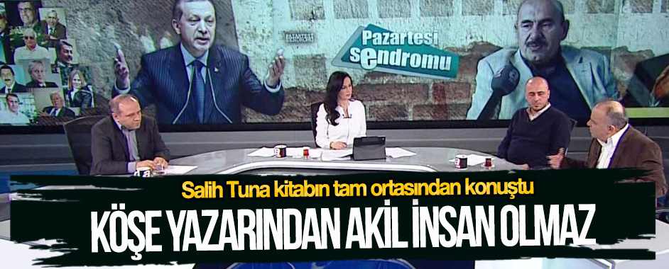 A HABER’DE Özge Özsağman’ın sunduğu gazeteciler Avni Özgürel, Salih Tuna ve Yıldıray Oğur’un katıldığı ‘Pazartesi Sendromu’ programına dün akşam Salih Tuna’nın sözleri damgasını vurdu. Teröre karşı çözüm sürecinde Akil İnsanlar Komisyonu’nun rolü ve komisyonda kimlerin olacağının konuşulduğu programda Tuna, “Köşe yazarı milletine akil adamlık görevi verilecekse bu iş çok uzar. …