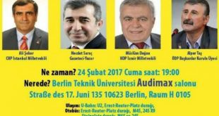 16 Nisan’daki referandum için takvim işlerken hayır cephesinde FETÖ sponsorluğunda CHP ve HDP ortak kampanya yürütüyor. Kandil’den, HDP’den, firardaki FETÖ’cülerden yükselen ‘hayır’ çığlıklarıyla beraber ana muhalefet partisi CHP de referandumda ‘hayır’ sonucu çıkması için kampanyasını başlatma hazırlığındayken, Almanya’daki bir konferansın tanıtım bülteni dikkat çekti. Berlin’de 24 Şubat’ta düzenlenecek olan ve …