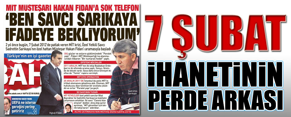 7 Şubat 2012’de saat 17.00’de MİT müşteşarına İstanbul’dan sürpriz bir telefon geldi. Müsteşarın özel hattı, “Hayırdır inşallah” dercesine açıldı. Telefondaki ses, “Ben, Özel Yetkili Savcı Sadrettin Sarıkaya. İfade vermek üzere makamıma bekliyorum” diyordu! Derin kriz 7 Şubat 2012. Ankara, Cumhuriyet tarihinde benzeri görülmemiş bir olayla sarsıldı. SABAH, “MİT Krizi‘nin” perdesini …