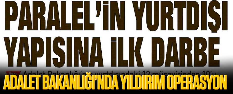 Adalet Bakanlığı, Paralel Devlet Yapılanması (PDY) adına yurtdışında hükümet aleyhinde propaganda yapan 10 adli müşaviri görevden aldı. Birleşmiş Milletler, Avrupa Güvenlik ve İşbirliği Teşkilatı (AGİT), Avrupa Konseyi ve Avrupa Birliği gibi uluslararası örgütlerde görev yapan adalet müşavirlerinde önemli bir değişikliğe gidildi. 2012’de Dışişleri Bakanlığı ile yapılan protokol kapsamında Bakan onayıyla …