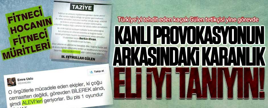 MEDYAGUNDEM.COM- 15 yaşında aşırı sol örgütlerin eline düşüp Gezi kalkışmasında hayatını kaybeden 15 yaşındaki Berkin Elvan için Zaman gazetesinde o taziyesi yayınlandığında mesele anlaşılmıştı. Fetullah Gülen’in bir taziye mesajında Berkin Elvan’ın Alevi kimliğine yaptığı vurgu bir “kışkırtma mesajı” olarak yorumlanmıştı. Gülen’in fitneci elemanları şimdi de Okmeydanı üzerinden Alevi-Sünni çatışması provokasyonu …