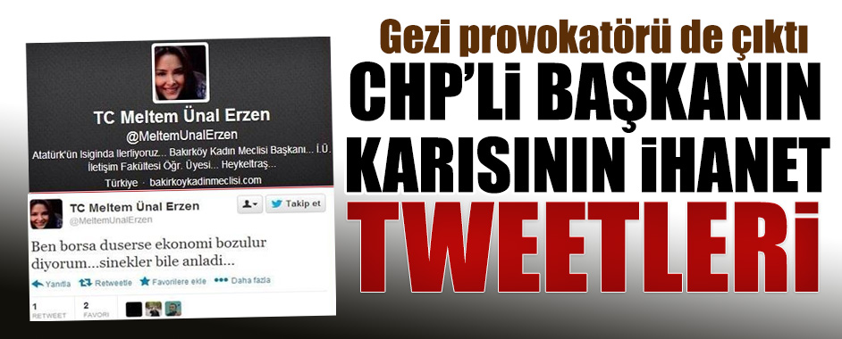 MEDYAGUNDEM.COM- CHP’li Bakırköy Belediye Başkanı Ateş Ünal Erzen’in oruç tutan insanları aşağılayan tweeti dışında Gezi provokasyonu döneminde Türkiye ekonomisinin batmasını isteyen “ihanet tweetleri” de ortaya çıktı. Ancak bir “vatan haini”nin göstereceği tavırla “ekonomi bozulsun” diye provokatif twitler de attığı ortaya çıkan Meltem Ünal Erzen’in bu twitlerine bakalım kocası nasıl cevap …