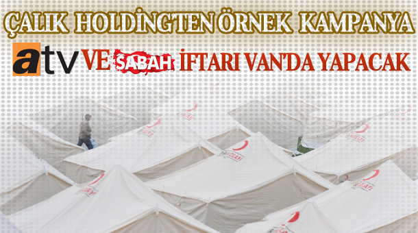 Çalık Holding, her yıl yapılan geleneksel iftar programını iptal ederek, depremle sarsılan Van Erciş’te iftar çadırı kuracak. Beş yıldızlı otellerde ve lüks lokantalarda iftar yapmak yerine Vanlıların gönül sofrasına misafir olup Kızılay çadırında oruç açılacak. Erciş’te kurulacak iftar çadırlarında ramazanda 9 bin kişi iftar yapacak. Çalık Holding’in “İftarımızı Van’da Açıyoruz” …