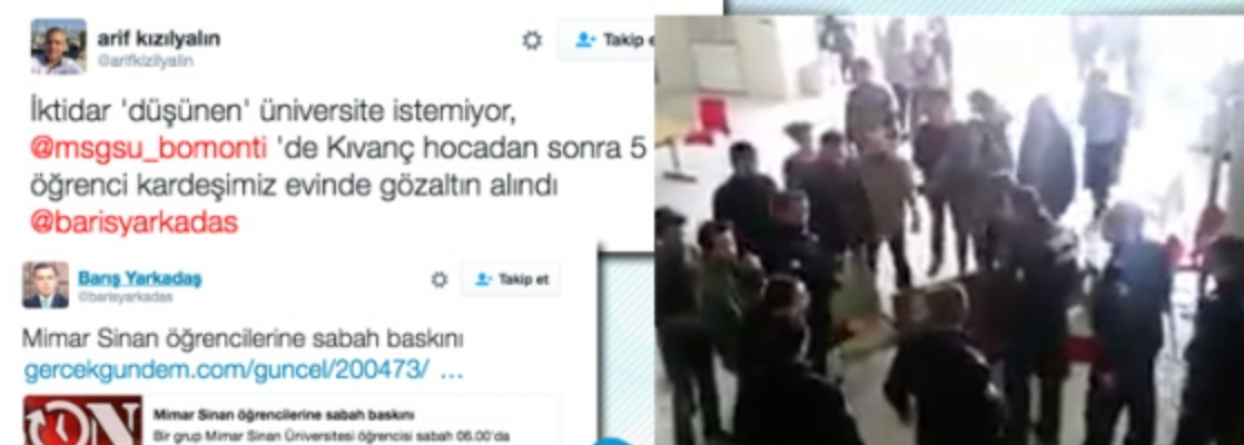Mimar Sinan Üniversitesi Güzel Sanatlar Fakültesi’nde geçtiğimiz hafta stand açarak terör propagandası yapan ve güvenlik görevlileri ile polisi darp eden DHKP-C yanlısı gruplara bu sabah baskın düzenlendi. 5 kişi gözaltına alınırken aralarında akademisyenlerin de olduğu 55 kişi aranıyor. Kızıldere’de 1972 yılında öldürülen teröristleri anma bahanesiyle geçtiğimiz hafta 30 Mart’ta Mimar …
