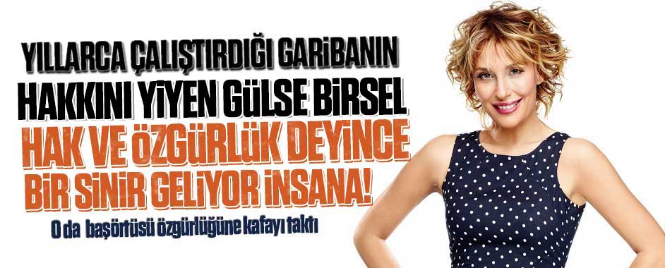 MEDYAGUNDEM.COM- 12 yıl sigortasız çalıştırdığı Mazlume K. kendisini mahkemeye verip hakkını çatır çatır aldığında, toplumun örnek aldığı ve kendisini insan hak ve özgürlüklerinin yılmaz savunucusu olarak gösteren Gülse Birsel’in boyaları dökülmüştü. Daha yanında çalıştırdığı bir insanın hakkını vermeyen biri nasıl olur da insan hak ve özgürlüklerinden söz edebilirdi? Maalesef Türkiye’de …