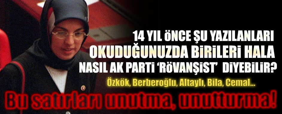 MEDYAGUNDEM.COM- Hilal Kaplan bugün Yeni Şafak’ta, “İster istemez zihnim,14 yıl önce, tarihe ilk başörtülü vekil olarak geçmiş olan, zor zamanda zor olanı yapan Merve Kavakçı Meclis’e girdiğinde yaşadıklarımıza gitti. Ancak hafıza-ı beşer özellikle travmalar karşısında nisyanla malul olduğundan, o günlerin korkunçluğunu yeterince hatırlayamadığımı fark ettim.” deyip, o günkü yazılardan bazı …