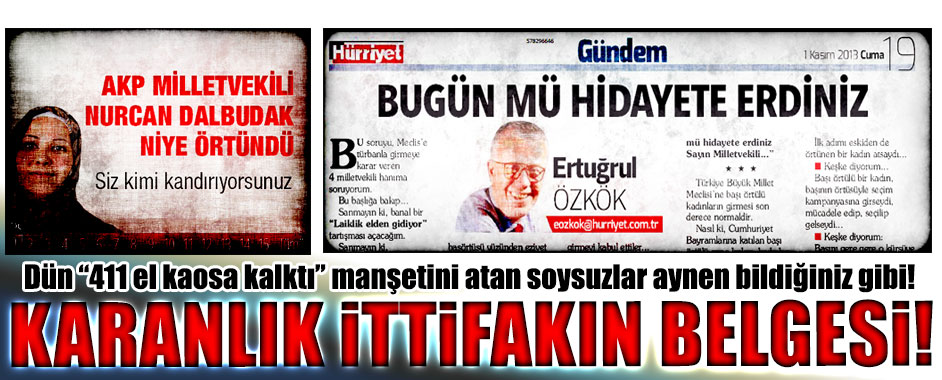 MEDYAGUNDEM.COM- Ne demişti Üstad Sezai Karakoç; “Onlar sanıyorlar ki, biz sussak mesele kalmayacak. Halbuki biz sussak, tarih susmayacak. Tarih sussa, hakikat susmayacak.” Evet tarih de hakikat de susmadı. Dün “411 el kaosa kalktı” manşeti atan Hürriyet ve o manşeti attıran Ertuğrul Özkök, tarihin de hakikatin de karşısında yüzkarası utançlarıyla başbaşa kaldılar. …