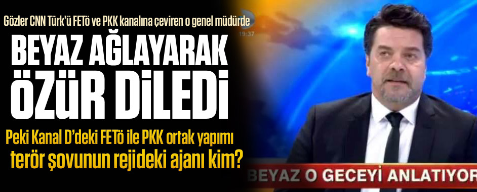 Beyaz, programında yaşanan PKK propagandası için izleyicilerinden özür diledi. Beyaz kendi programındaki tezgahı samimiyetle anlattı ancak ortaya net bir gerçek çıktı. Kanal D’nin rejisinde Beyazıt Öztürk’ü de böylesi bir tuzağın içine çekip kullanan başka bir “üst akıl” var belli ki… PKK ve FETÖ ortak kumpasının Doğan medyasındaki provokatörü kim merak …