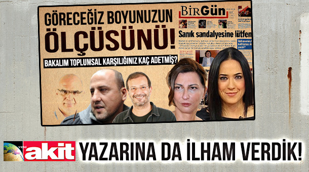 MEDYAGÜNDEM- Dün dedik ki “Görelim boyunuzun ölçüsünü”. 6 binlik Birgün’ün yeni transferleriyle tiraj artırıp artıramayacağına dikkat çektik. Belli ki haberimiz Yeni Akit yazarına da “ilham vermiş”, Ali İhsan Karahasanoğlu da bugün “Şişirilen aydınların(!) alalım boy ölçülerini!” diye yazdı. Karahasanoğlu’nun yazısı şöyle: ————————————————————————————————————————————————– “Şişirilen aydınların(!) alalım boy ölçülerini!” Karanlık Oda’dan bir …