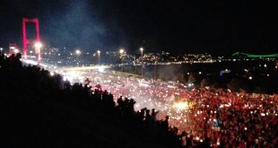 15 Temmuz darbe girişimine karşı bu akşam saat 22.00’de binlerce vatandaş Boğaziçi Köprüsü’nde… Boğaziçi Köprüsü gişelerde binlerce kişi darbe girişimini protesto ediyor. Milli İrade Platformu öncülüğünde binlerce kişi, darbe girişimini protesto etmek için ‘Başladığı Yerdeyiz’ sloganıyla Üsküdar Millet Parkı’nda buluşarak saat 21.00’da Boğaziçi Köprüsü’ne yürüdü. Ellerindeki Türk bayraklarıyla Boğaziçi Köprüsü …