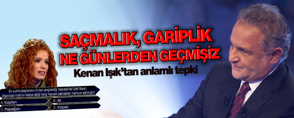 Kim Milyoner Olmak İster’i sunan Kenan Işık, yarışmacıya yönelttiği 27 Mayıs sorusuyla ilgili “Böyle garip şeyler de var Türkiye Cumhuriyeti tarihinde” yorumunda bulundu. İŞTE O KÖPEK DAVASI Afganistan Kralı, Celal Bayar’a çok değerli “Afgan Tazısı” cinsi bir köpek hediye etmiştir. Hayvana bir süre, devlet çiftliğinde bakılmıştır. Daha sonra Celal Bayar …