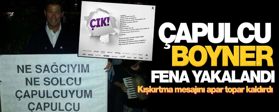 İşadamı Cem Boyner de Gezi Parkı eylemlerinde görüntülendi… Boyner Holding Yönetim Kurulu Başkanı Boyner’in, elinde taşıdığı pankartta, “Ne sağcıyım ne solcu, çapulcuyum çapulcu” yazıyordu. Radikal’in görüştüğü Cem Boyner, sosyal medyada hızla yayılan fotoğrafını doğruladı. Bu fotoğrafın ne anlama geldiği ise MEDYAGÜNDEM’in şu analizinde: