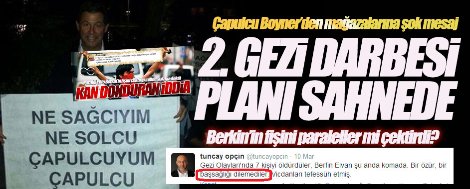 Gezi eylemleri sırasında baş provokatör olarak en ön sıralarda yer alan Cem Boyner’den halk tarafından seçilmiş Cumhurbaşkanı Recep Tayyip Erdoğan’a büyük saygısızlık… Boyner Holding Yönetim Kurulu Başkanı Cem Boyner’den bir küstahlık daha… Gezi eylemlerinde Türkiye’de kaos ortamı yaratmak için her türlü çabayı veren Boyner “Çapulcuyum” diyerek ön sıralarda yerini almıştı. …