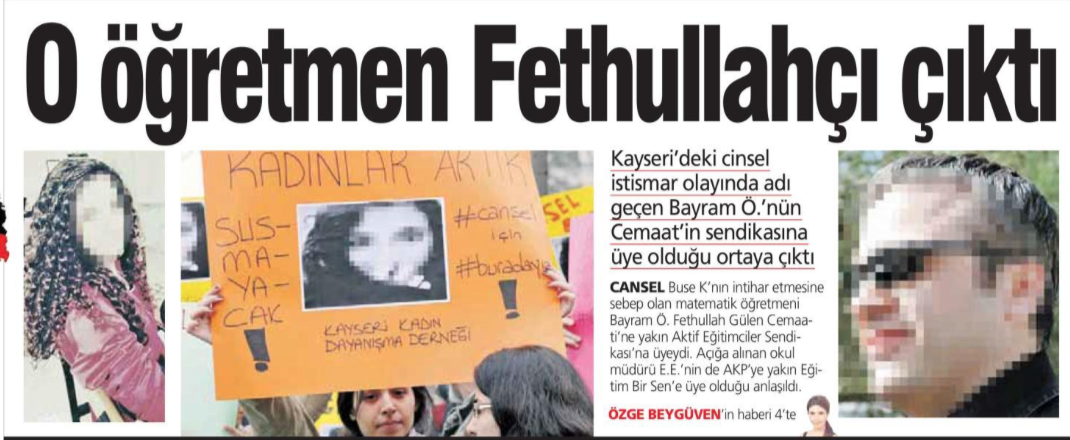 Kayseri’deki cinsel istismar olayında adı geçen Bayram Ö.’nün paralel örgütün sendikasına üye olduğu ortaya çıktı. Kayseri’deki cinsel istismar olayında adı geçen Bayram Ö.’nün Cemaat’in sendikasına üye olduğu ortaya çıktı. Aydınlık’tan Özge Beygüven’in haberine göre; Cansel Buse K.’nın ölümüne sebep olduğu iddia edilen matematik öğretmeni Bayram Ö.’nün Fetullah Gülen cemaatine yakınlığıyla …