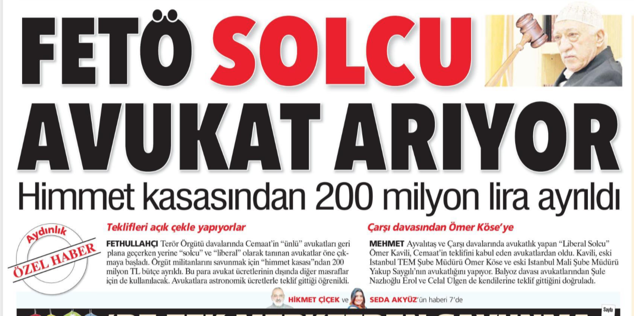 DevamıFETÖ himmet paralarıyla satın alacak solcu avukat arıyor!